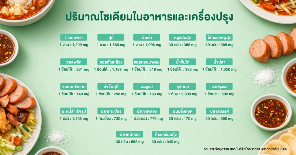 รวบรวมข้อมูลจาก สถาบันวิจัยโภชนาการ มหาวิทยาลัยมหิดล